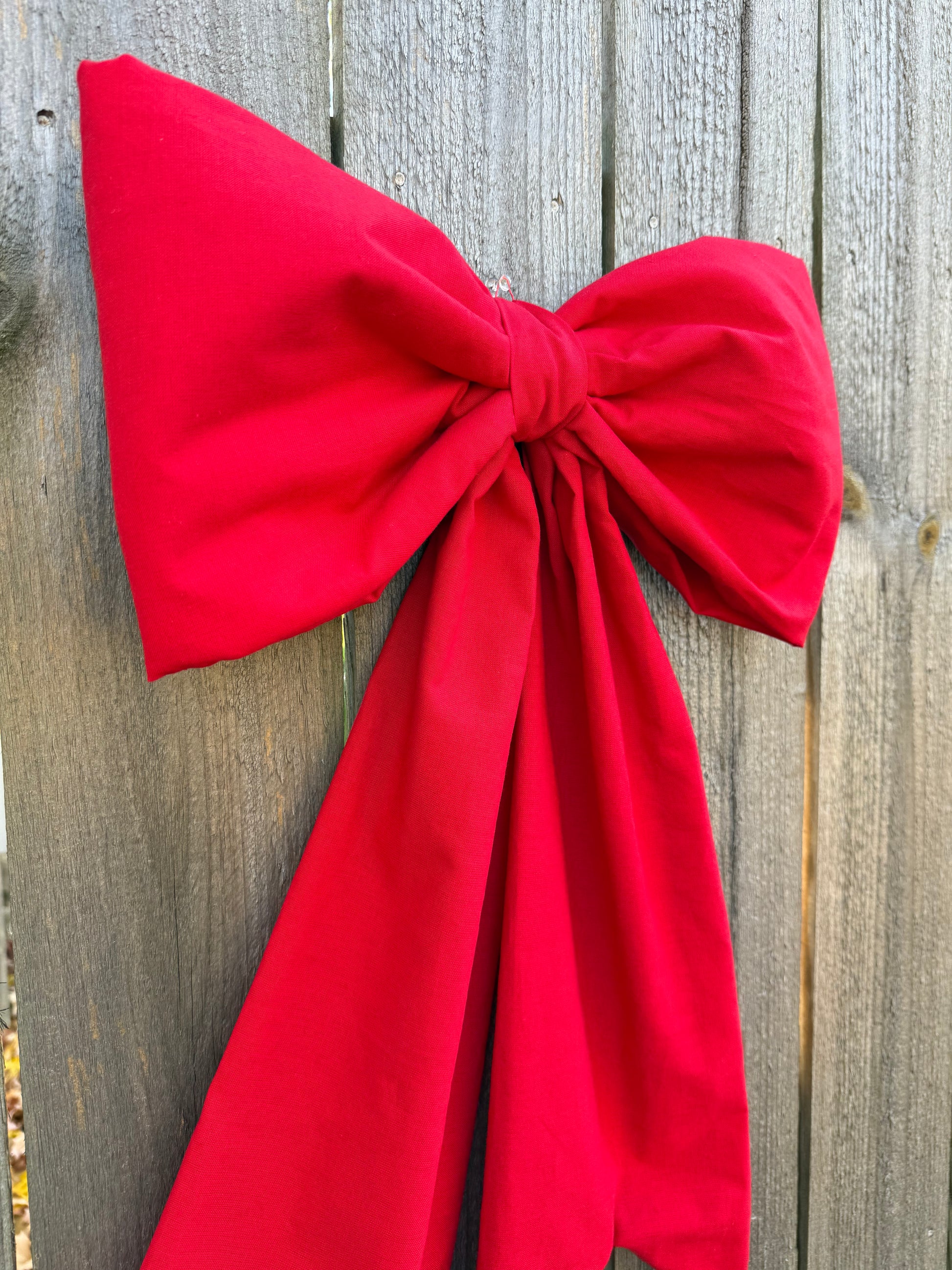 Make a bold seasonal statement with the Classic Holiday Red Bow. Made from a vibrant, bright red fabric, this bow adds the perfect pop of festive color to wreaths, mantels, gift baskets, front doors, trees, or everyday décor. Its striking simplicity makes it easy to pair with any holiday theme or color palette.