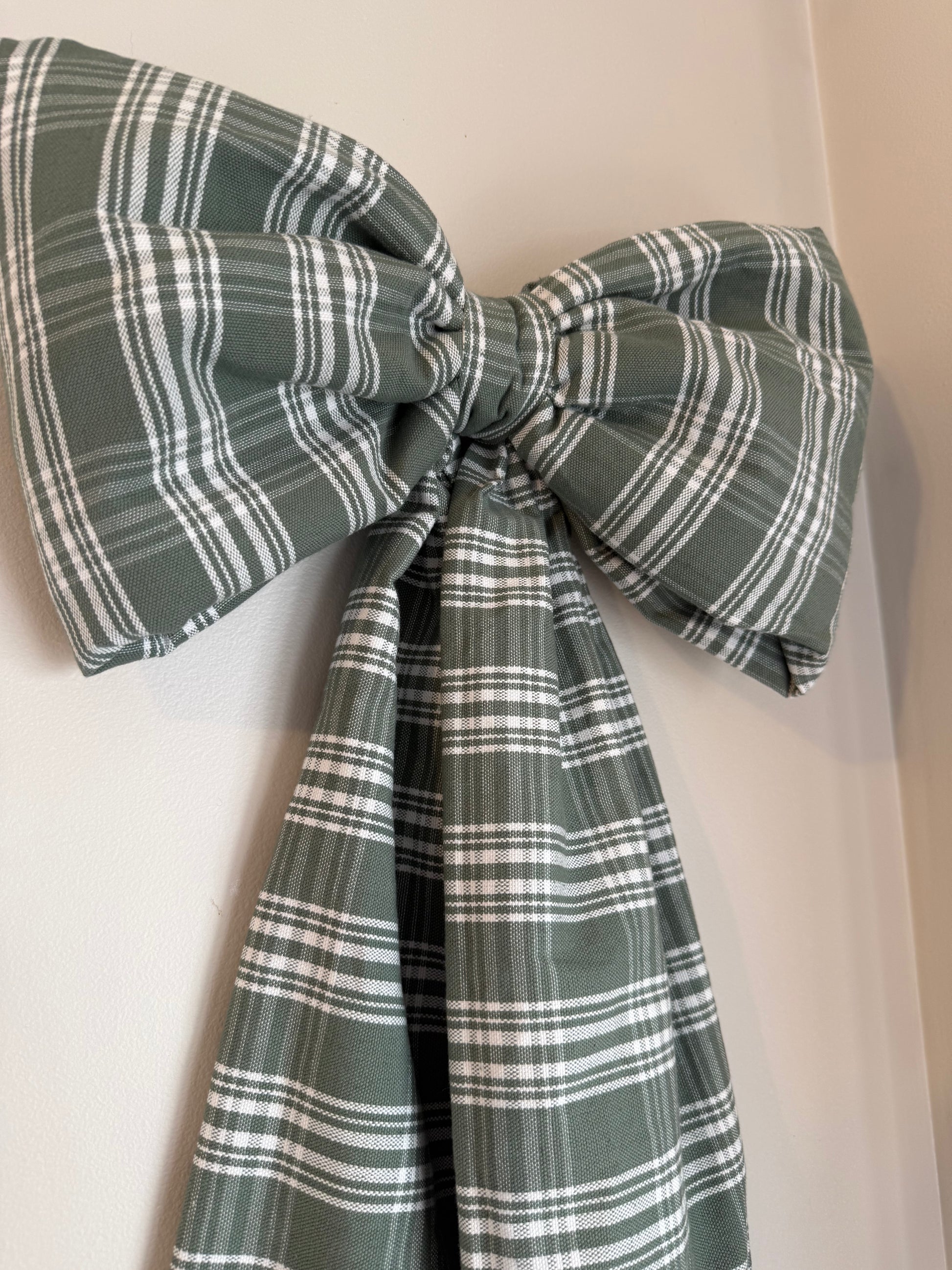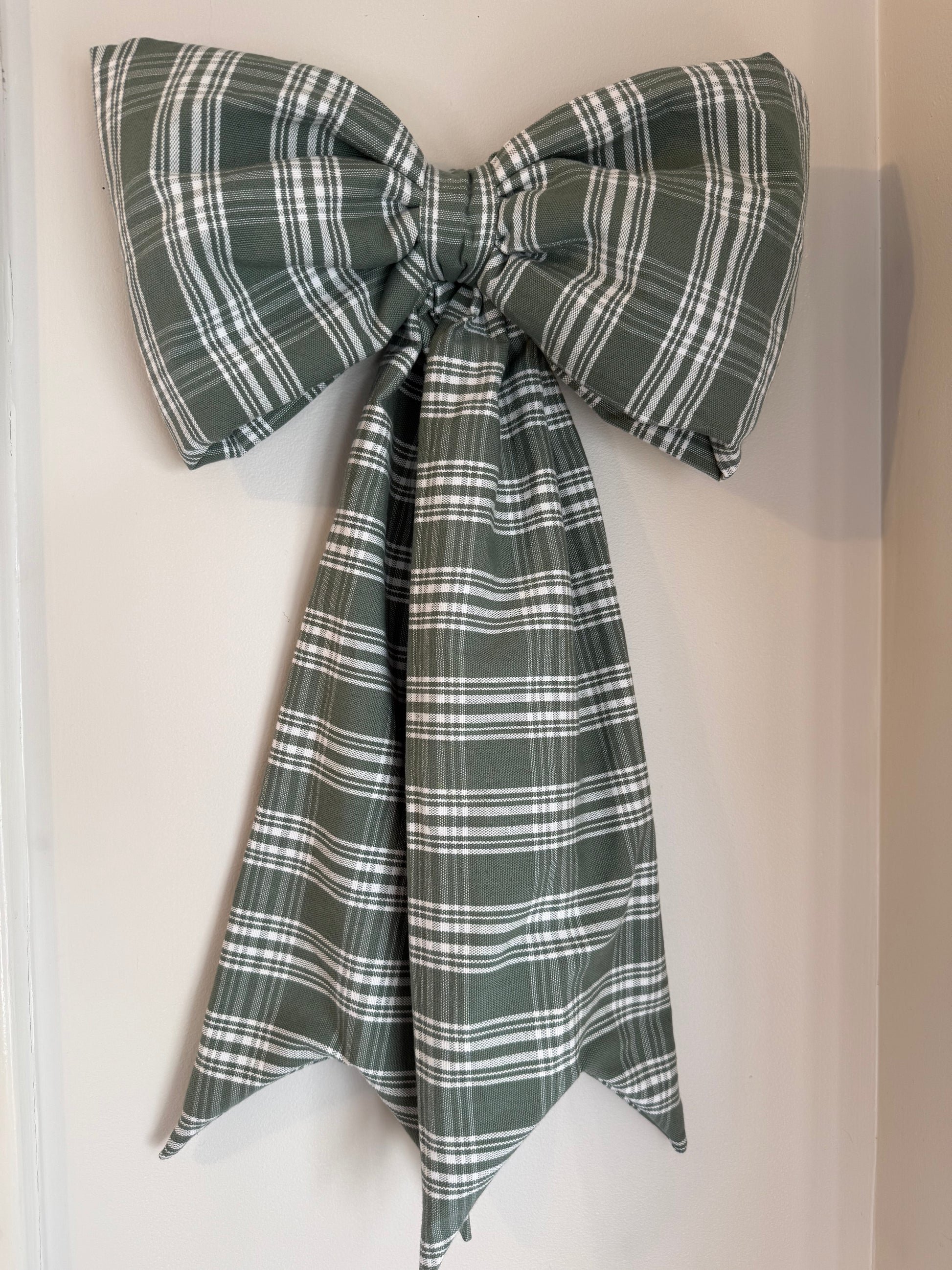 Soft green tones meet crisp white in this timeless plaid bow — a simple yet elegant accent that adds charm to any space. Whether displayed on your front door, wreath, or Christmas tree, this handmade bow brings a fresh, cozy touch perfect for every season.
